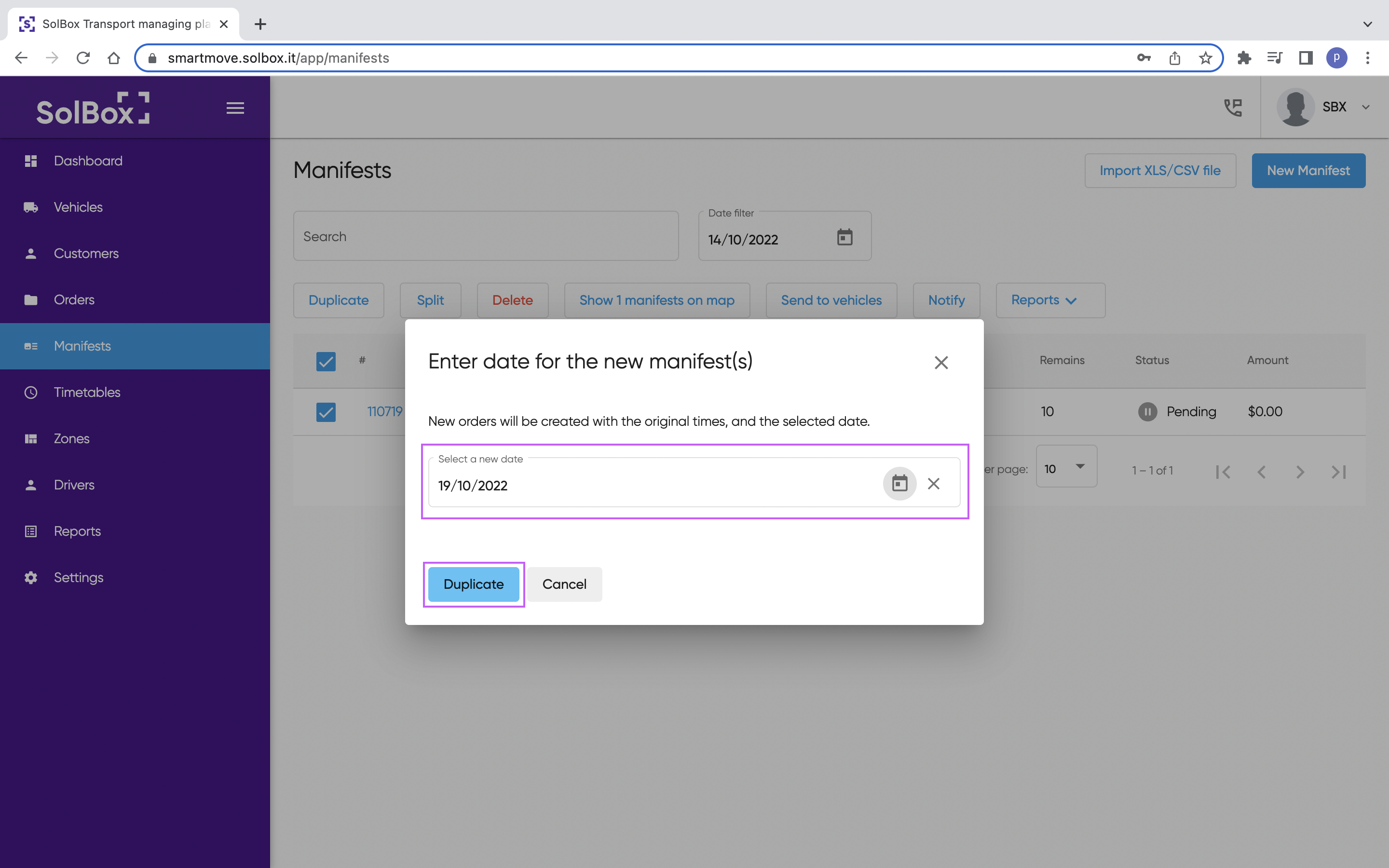 1. Go to Manifests page: https://smartmove.solbox.it/app/manifests 2. Click into the manifest name 3. Click "Optimise" 4. Click to expand "Show details" 6. Tick "Create Excel file with solution" and click "Calculate" 7. Excel file "solution.xlsx" ...