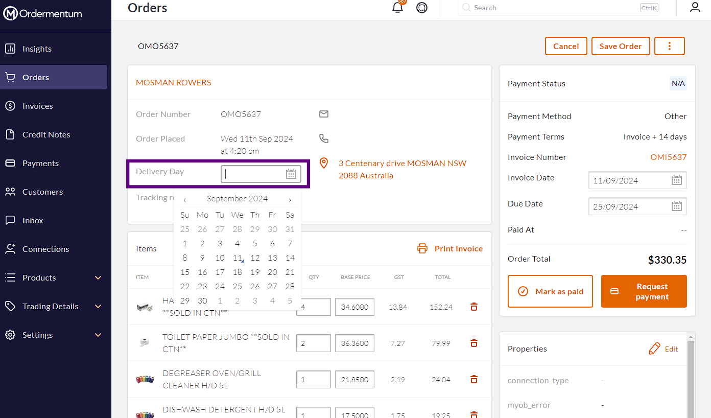 Please ensure that the delivery dates of the orders are entered in Ordermentum.