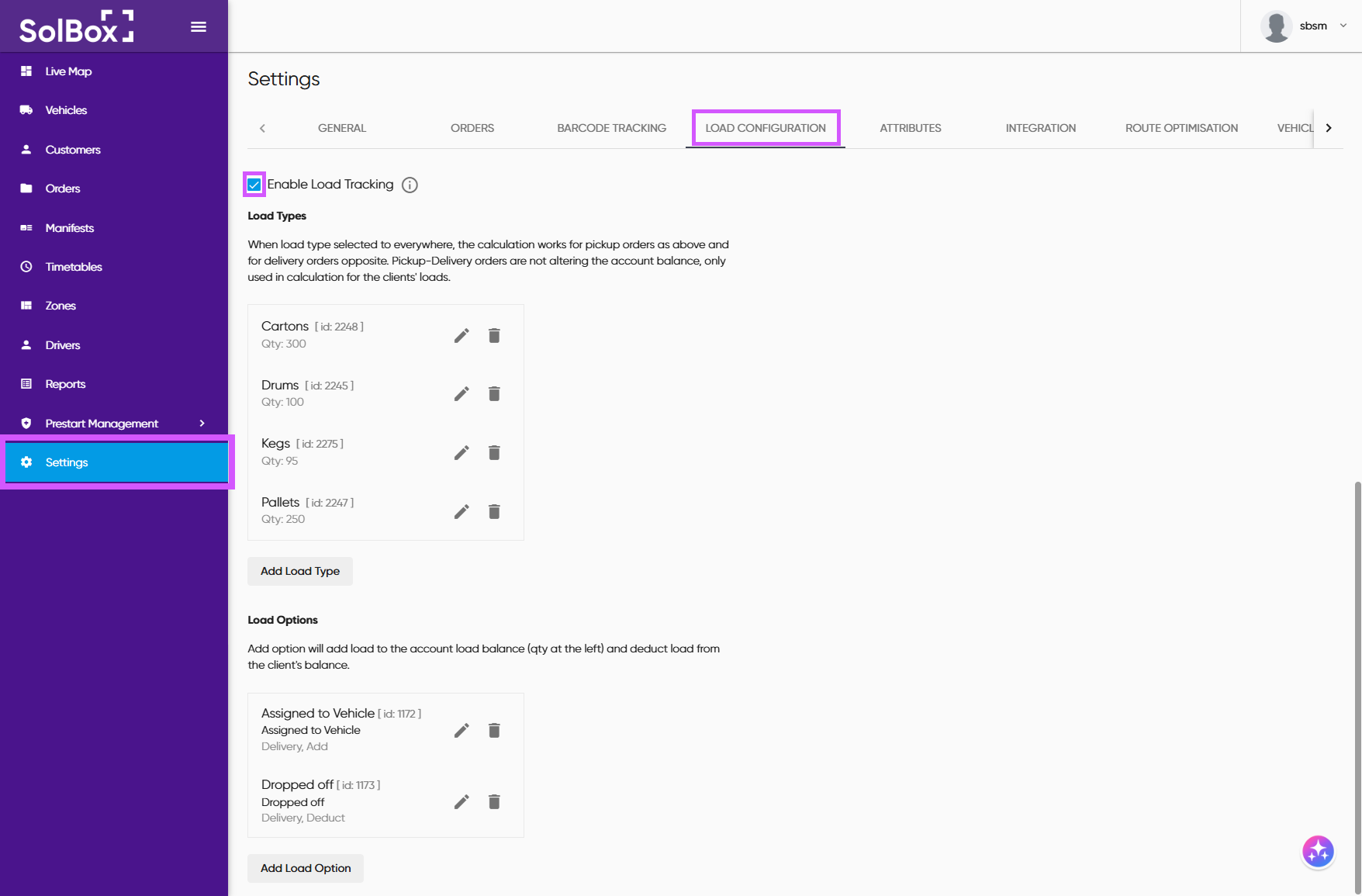 When enabled, each Load Type can be counted with a driver action via Load Options: