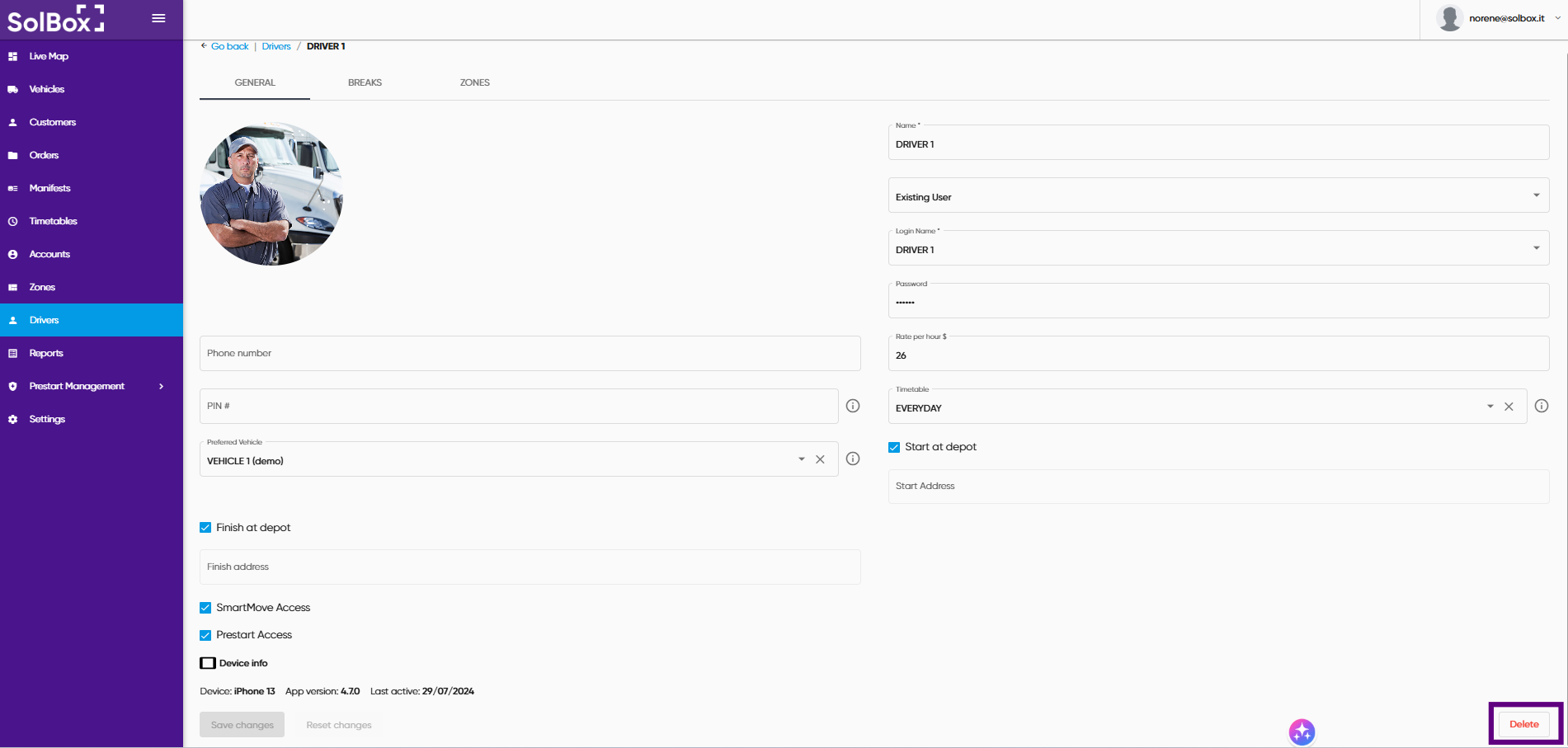 If a driver has left the company or is no longer participating in operational runs, you may remove them from your account to keep your records up to date. To delete a driver, navigate to the Drivers module, select the driver you wish to remove, and click Delete. Once deleted, the driver will no longer appear in any driver selection lists or be available for assignment to future runs.