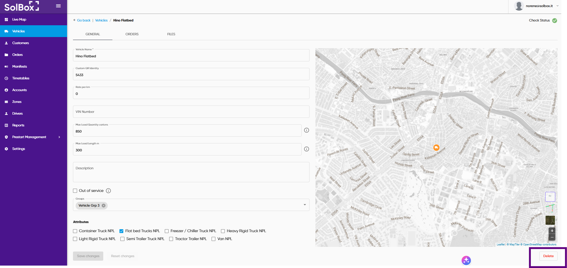 If a vehicle has been sold or is no longer required for your operations, it can be removed from your account. To delete a vehicle, navigate to the